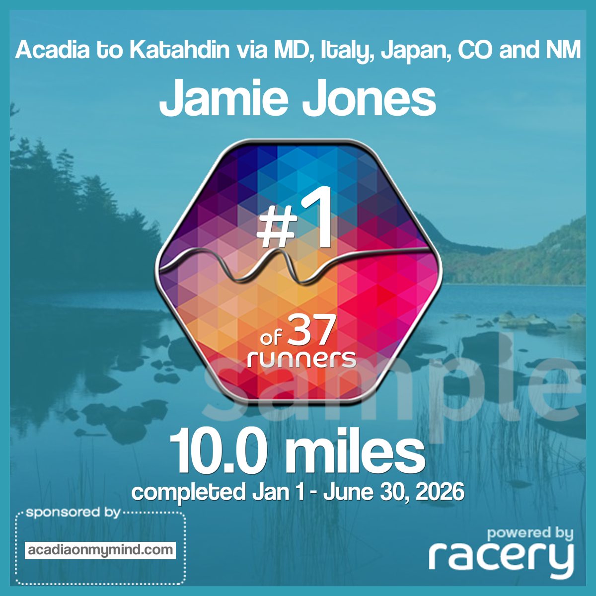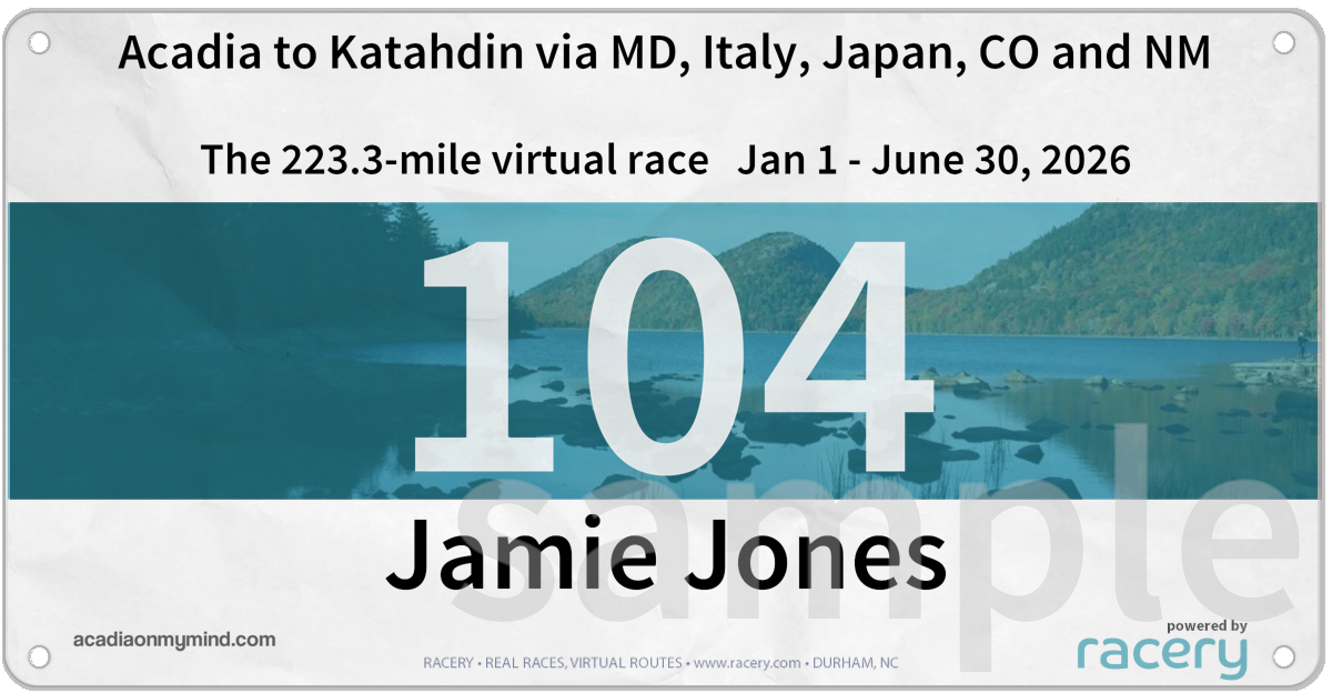 Everyone is a winner, with medals, coasters and magnets mailed soon after June 30, whether you completed the segments by then or not. Mileage from this race and future races will count toward cumulative totals, allowing you to reach special milestones and recognition. Details of the Acadia to Katahdin Virtual Racing Hall of Fame to be announced at acadiaonmymind.com/virtual-races